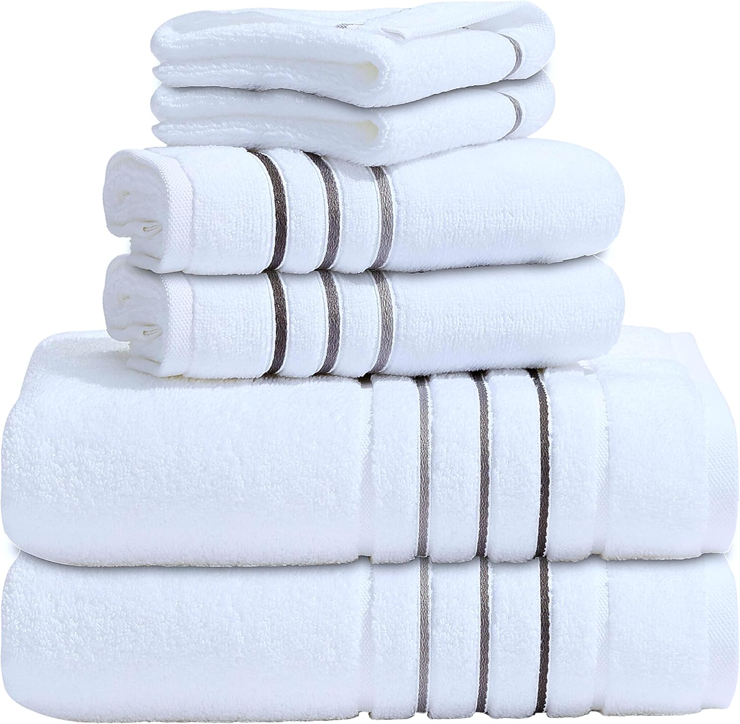 Bath Towel Set_White Towel For Bathroom, Luxury Hotel &Spa Quality, 100% Cotton .Includes 2 Large Bath Towels, 2 Hand Towels and 2 Washcloths.Super Soft, Absorbent & Decorative (White/Azure Blue)