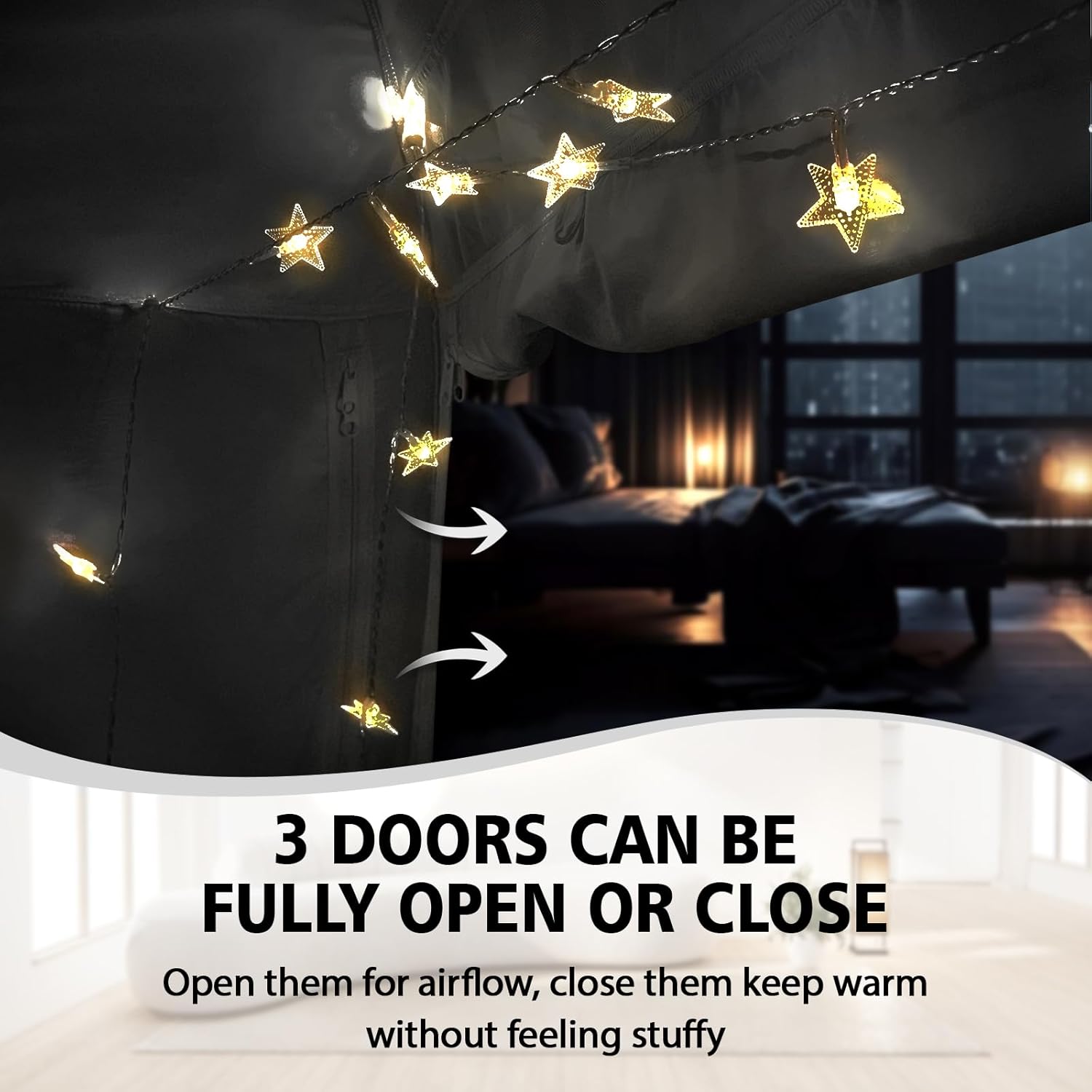 Bed Tent Bed Canopy Breathable 100% for Adult and Kids- Original Design Light Reduction 93% Sleeping Dream Tents Indoor Portable Big Space with String Light 3 Doors Twin Full Queen King Size